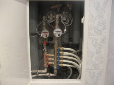 Наша компания выполнила комплексный ремонт санузла в хрущевке на улице Обручева. Для облицовки стен мы выбрали белую плитку с утонченным рисунком. В ходе проведения работ была уложена новая стяжка, смонтирован подвесной потолок и почищена система вентиляции. Вытяжное отверстие мы задекорировали решеткой. Коллектор водоснабжения разместили в боковом углу комнаты, закрыв ее распашной дверцей. В санузле установили рукомойник с тумбой, унитаз, электрический полотенцесушитель и ванну. Дополнительно смонтировали стеклянную полку и держатель для бумаги. Общая стоимость ремонта составила 98 тысяч рублей. Цена черновых материалов — 33000 р.